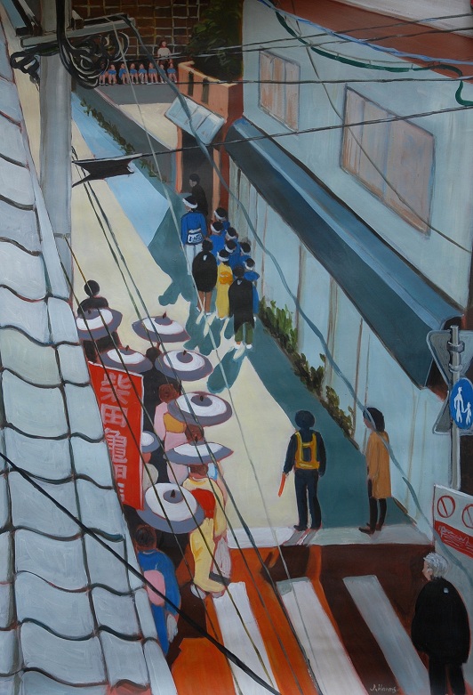 It was during one of those late night sessions that I painted O’kunchi, my very first true work of art. The painting depicts the traditional festival as seen from my balcony.